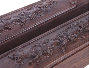 The Racing Horse Paper Weights are a pair of beautiful wooden paper weights filled with numerous racing horses. Stained dark, the elegance of the wood grain still to shines through to create a remarkable set. This combination will make inspiring decoration for your desk that will also be useful.