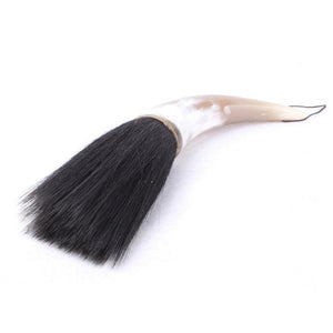 Excellent brush made of black goat hair and a bull horn handle with an extra long and wide tip for large script calligraphy writing.