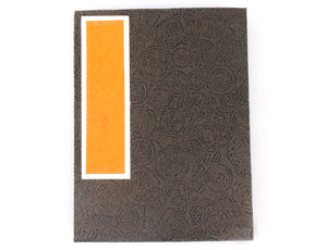Paper material: Shuen PaperWith its carefully constructed and placed patterns, the Handmade Album with Brown Cover of Patterns can be considered a piece of art unto itself before the artist even makes a mark on the inside. All of this is nicely complemented by the vertical orange strip in the upper left that provides a space for a title.