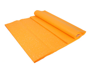 Decorative xuan paper in bright orange with golden speckles allowing for special effects on the resulting artwork. Made of Unsized (Unprocessed) Single Shuen this paper can be used for calligraphy writing and Sumi-e painting while the golden speckles can create stunnint effects such as rain, snow or a speckled background structure.