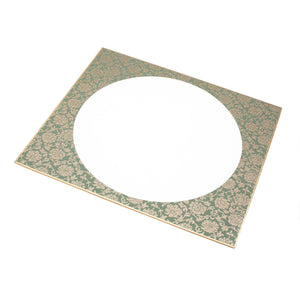 The Flower Moon is a boardbook - also known as a shikishi board - that is often used as a decoration item with calligraphy scripts or paintings added to it. This item serves as the perfect decoration, as its already gorgeous frame of intricately ornamented flower patterns will complement the personalization you provide with your artwork. The green and gold border will complement nearly any color.