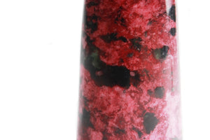 The Peach Blossom Stone is a type of moorstones. The peach blossom stones can be found in Hunan Province, China, also some areas of Australia. It's formed to have these beautifully pink / fuchsia colors that look like peach blossoms. Around these eye-catching pinky flower patterns, there are other colors like green, white & black, the black part of the stone is mostly transparent.