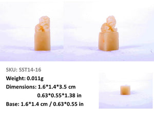 A group of 16 beautiful natural Shoushan seal stones with hand carved Pixiu head. The Pixiu is a Chinese mythological figure - a hybrid between a Chinese dragon and lion which - according to Chinese feng shui teachings is warding off evil spirits and brings wealth and prosperity to your home. Our carving master can hand carve it for you so you can use it as a signature chop to sign Oriental artworks or as a decorative study item.