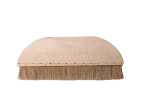 This is a specialty brushed used in the process of wet mounting paintings on a backing or reinforcement paper to get rid of rinkles so that in a later step the painting is ready for painting. This brush has a similar usage as our palm fibre brushes - it serves you to flatten the backing paper which is already applied on the back of the artwork to get rid of rinkles.