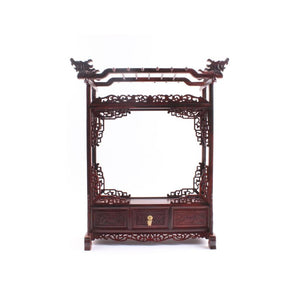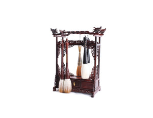 When we were looking for a special brush hanger which not only has a functional value of hanging and storing brushes but also is an artistic object by itself, we finally found the "Beauty of Huizong" brush rack and fell in love with right away. It is entirely hand-carved out of Chinese Redwood - a premium type of wood used mainly for furniture - in one of our manufacturers by a master craftsman. The beams are carved with traditional Chinese ornaments, the four corner tips adorned by dragon heads. Placed on your desk in your study, just looking at it will get you into the right mood to start working on your Calligraphy or Sumi artworks. The "Beauty of Huizong" can hold up to 10 brushes and in its little drawer you can store up to 3 signature chops or seal paste.