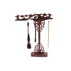 Large brush hanger made of Chinese Jizhi Redwood (鸡枝木) with carved Chinese Phoenixes. Comes in three pieces which can be easily assembled by plugging them into each other. This rack is also suitable for hanging larger brushes with a length of up to 16 in / 41 cm (including loop).